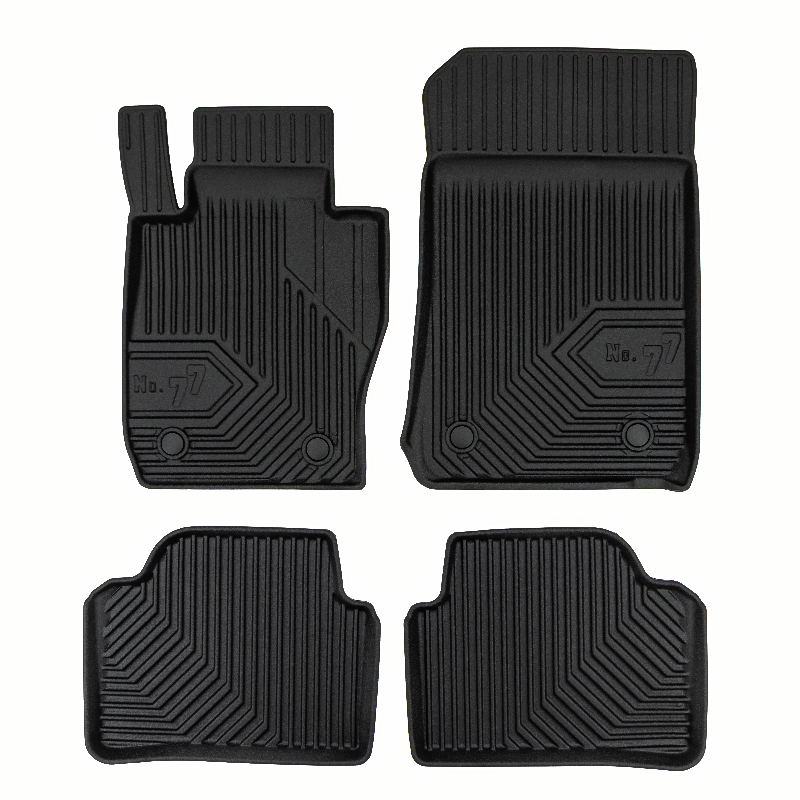 Guminiai Premium 77 kilimėliai: (aukštos kokybės plastiko, gumos mišinys / TPE, komplektas – 4vnt., juodi, krašto aukštis 4 cm, montavimo būdas – spaustukai).