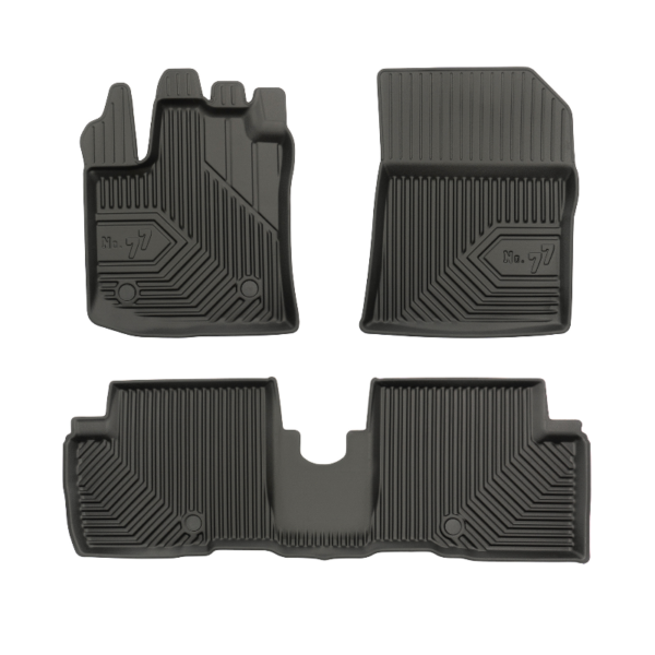 Aukšto lygio apsauga jūsų automobiliui, kilimėliai idealiai atitinka ir puikiai priglunda prie salono grindų. Modernus ir funkcionalus dizainas, bei aukštas kraštas garantuoja efektyvų vandens ir purvo surinkimą ir neleidžia jam nutekėti. Taip automobilio salonas išlieka švarus. Pagaminti iš aukštos kokybės gumos, kurioje nėra toksiškų komponentų. Bekvapis. Kilimėliai turi spaustukus, todėl jį lengva pritvirtinti prie grindų. Guminiai kilimėliai išlaiko savo elastingumą net esant temperatūros pokyčiams. Specialus paviršius neleidžia kilimėliams slysti vairuojant, todėl labai paveikia saugumą ir kelionės komfortą.