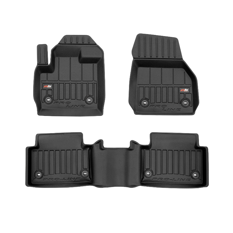 Guminiai ProLine 3D kilimėliai: (aukštos kokybės plastiko, gumos mišinys / TPE, komplektas – 3vnt., juodi, krašto aukštis 7 cm, montavimo būdas – spaustukai).