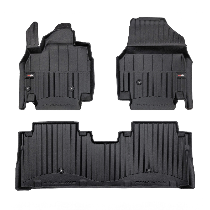 Guminiai ProLine 3D kilimėliai: (aukštos kokybės plastiko, gumos mišinys / TPE, komplektas – 3vnt., juodi, krašto aukštis 7 cm, montavimo būdas – spaustukai).