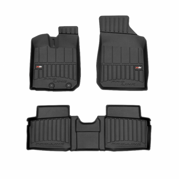 Guminiai ProLine 3D kilimėliai: (aukštos kokybės plastiko, gumos mišinys / TPE, komplektas – 4vnt., juodi, krašto aukštis 7 cm, montavimo būdas – spaustukai).