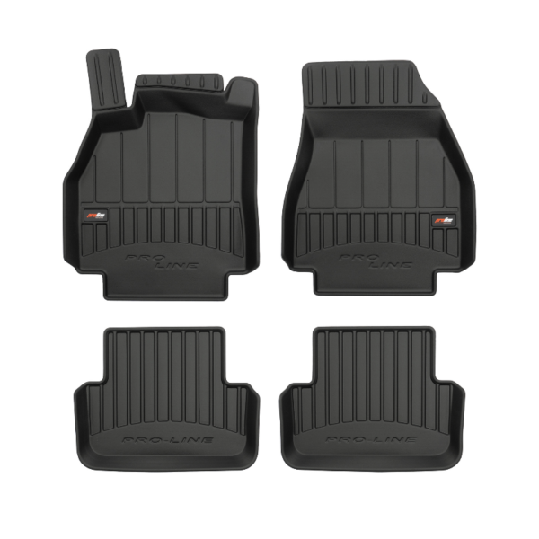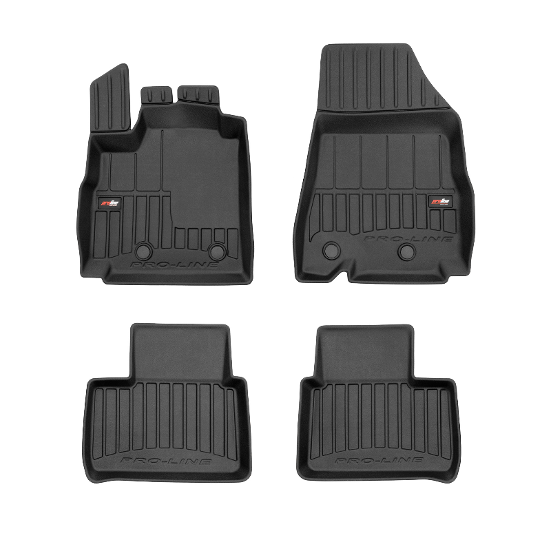 Guminiai ProLine 3D kilimėliai: (aukštos kokybės plastiko, gumos mišinys / TPE, komplektas – 4vnt., juodi, krašto aukštis 7 cm, montavimo būdas – spaustukai).