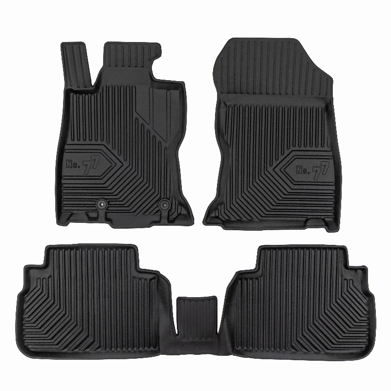 Guminiai Premium 77 kilimėliai: (aukštos kokybės plastiko, gumos mišinys / TPE, komplektas – 3vnt., juodi, krašto aukštis 4 cm, montavimo būdas – spaustukai).