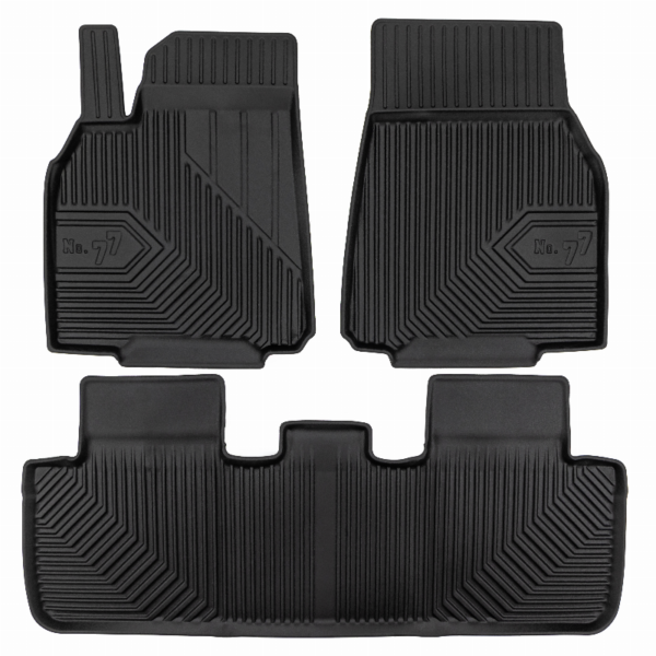 Guminiai Premium 77 kilimėliai: (aukštos kokybės plastiko, gumos mišinys / TPE, komplektas – 3vnt., juodi, krašto aukštis 4 cm, montavimo būdas – spaustukai).