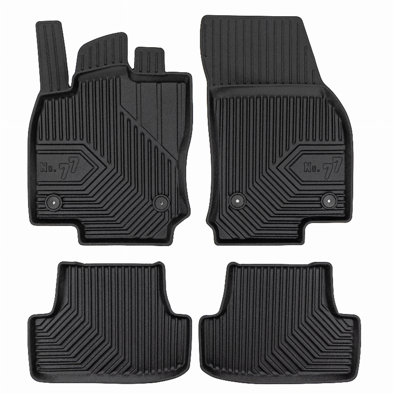 Guminiai Premium 77 kilimėliai: (aukštos kokybės plastiko, gumos mišinys / TPE, komplektas – 4vnt., juodi, krašto aukštis 4 cm, montavimo būdas – spaustukai).