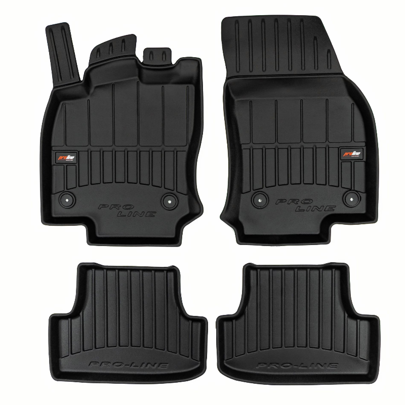 Guminiai ProLine 3D kilimėliai: (aukštos kokybės plastiko, gumos mišinys / TPE, komplektas – 4vnt., juodi, krašto aukštis 7 cm, montavimo būdas – spaustukai).