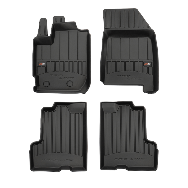 Guminiai ProLine 3D kilimėliai: (aukštos kokybės plastiko, gumos mišinys / TPE, komplektas – 4vnt., juodi, krašto aukštis 7 cm, montavimo būdas – spaustukai).
