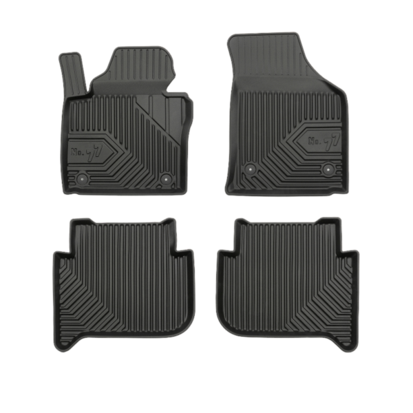 Aukšto lygio apsauga jūsų automobiliui, kilimėliai idealiai atitinka ir puikiai priglunda prie salono grindų. Modernus ir funkcionalus dizainas, bei aukštas kraštas garantuoja efektyvų vandens ir purvo surinkimą ir neleidžia jam nutekėti. Taip automobilio salonas išlieka švarus. Pagaminti iš aukštos kokybės gumos, kurioje nėra toksiškų komponentų. Bekvapis. Kilimėliai turi spaustukus, todėl jį lengva pritvirtinti prie grindų. Guminiai kilimėliai išlaiko savo elastingumą net esant temperatūros pokyčiams. Specialus paviršius neleidžia kilimėliams slysti vairuojant, todėl labai paveikia saugumą ir kelionės komfortą.
