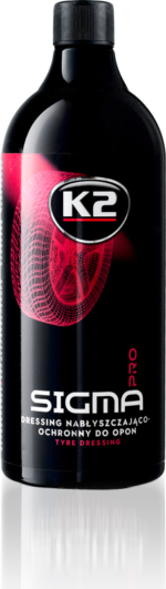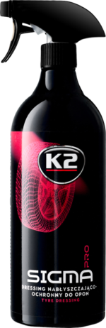 „K2 SIGMA PRO“ buvo sukurta taip, kad padarytų vartotojui įspūdį rezultatu ir suteiktų padangoms nepriekaištingą išvaizdą, tuo pačiu apsaugodama jas nuo sugadinimo, įtrūkimų ir senėjimo. Vandeniui atstumianti danga ant gumos paviršiaus apsaugo nuo oro sąlygų ir kelio taršos. Tai yra labai veiksminga priemonė nuo kenksmingos UV spinduliuotės, kuri, atsižvelgiant į išorės sąlygas, trunka iki kelių savaičių. Produkto formulė buvo sudaryta taip, kad būtų užtikrintas aukštas darbo efektyvumas ir komfortas. Švelni želė konsistencija leidžia be jokių problemų pasiekti bet kokias padangos ertmes, įspaudus ir perforacijas. Blizgi ir švelni satininė išvaizda.